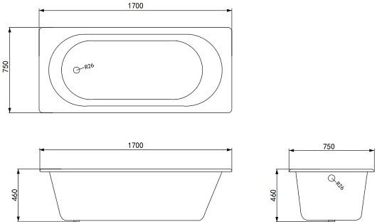 Timo Чугунная ванна Sofia 170x75x46 с ручками