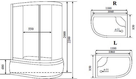 - Профиль: алюминиевый, серебристый (матовый хром).