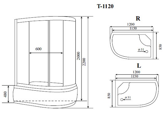 Душевая кабина левосторонняя - арт. T-1120 P L