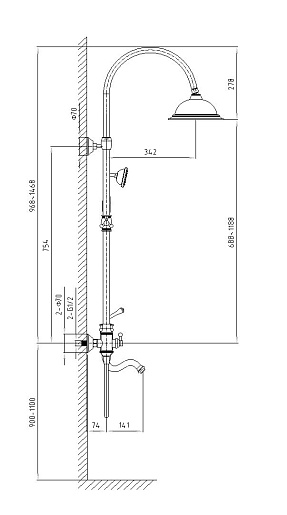 Смеситель, лейка, шланг, штанга, верхний душ, крепление