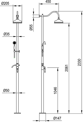 Описание: душевая система однорычажная, напольная, 2-х режимная. Картридж 35 мм. Диаметр тропического душа: 205 мм.Характеристики
