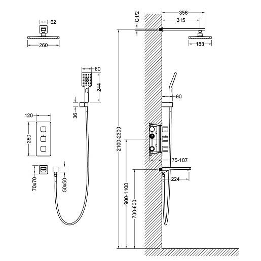Комплектация:Смеситель с монтажной коробкой, скрытого монтажа, с термостатом - 1 шт.
