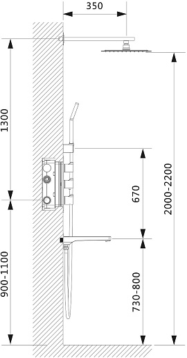 Термостат, лейка, шланг, штанга, верхний душ, крепление