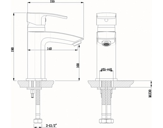 - 1 отверстие для монтажа
