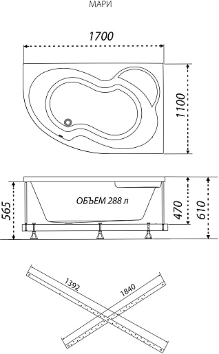 Акриловая ванна Triton Мари 170x110 L - арт. Щ0000046123.