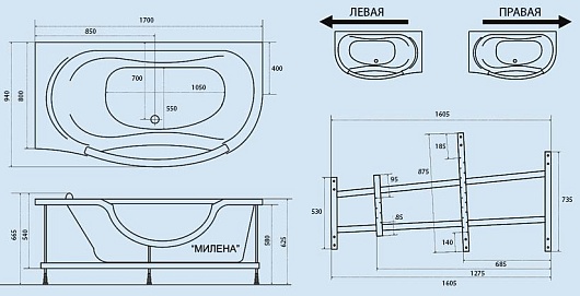 Triton Акриловая ванна "Милена 170" R со стеклом
