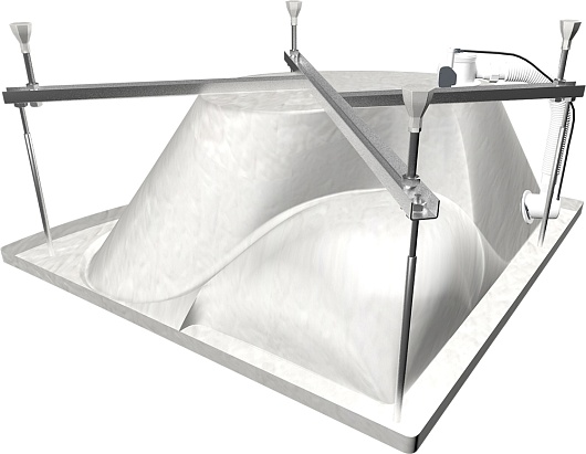 Кроме компактности эта ванна обладает значительной прочностью, достигаемой за счёт применения многослойного армирования, выдерживающего до 500 кг нагрузки. Дно ванны покрыто специальным составом, устраняющим скольжение и препятствующим развитию болезнетворных микроорганизмов.