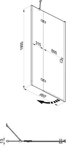 В комплекте: душевая дверь, кронштейн.
