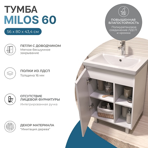 Тумба под раковину Milos 600-1-0 белая матовая