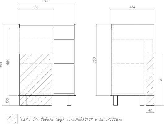 - 1 распашная дверка, 2 открытые полки.