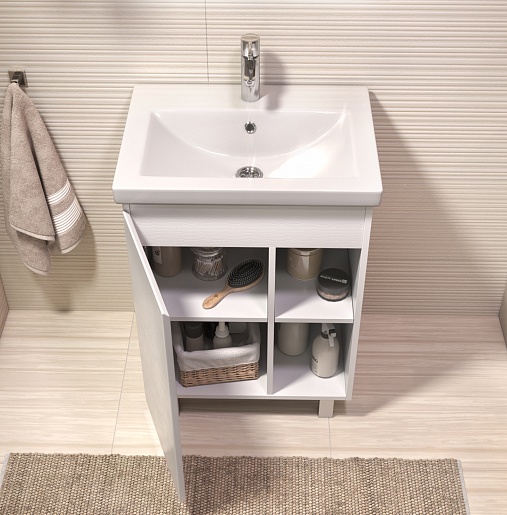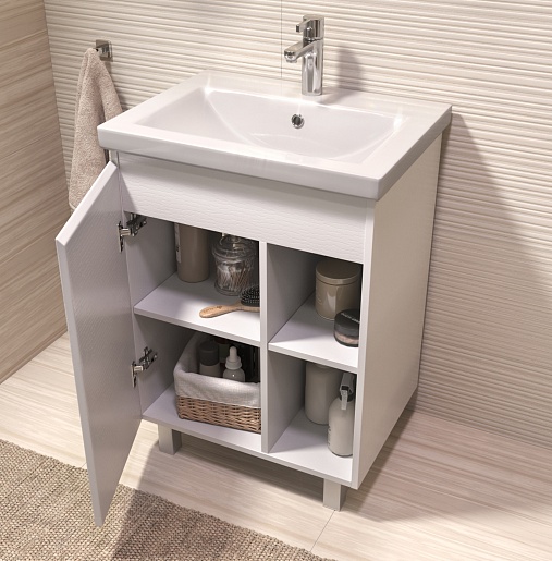 В комплекте: тумба, раковина, ножка (4 шт.), крепеж.