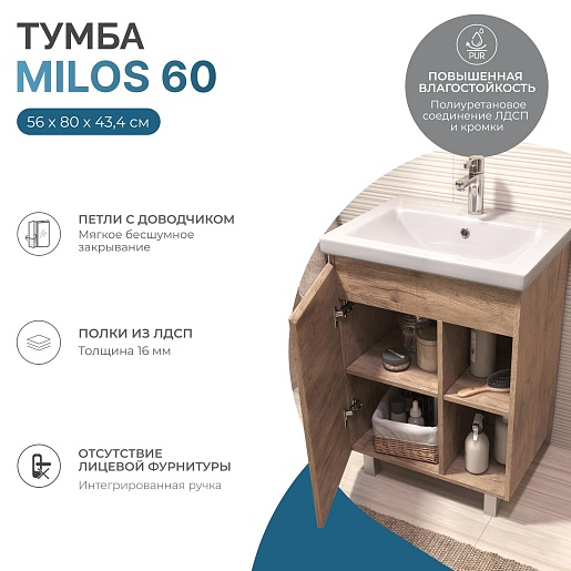 Напольная тумба с раковиной Vigo Milos 600-1-0 - арт. 316 дуб золотой / S-UM-COM60/1-w VIGO.