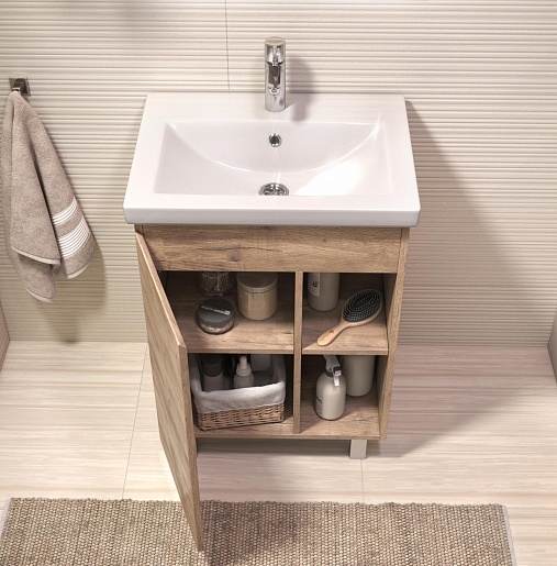 В комплекте: тумба, раковина, ножка (4 шт.), крепеж.