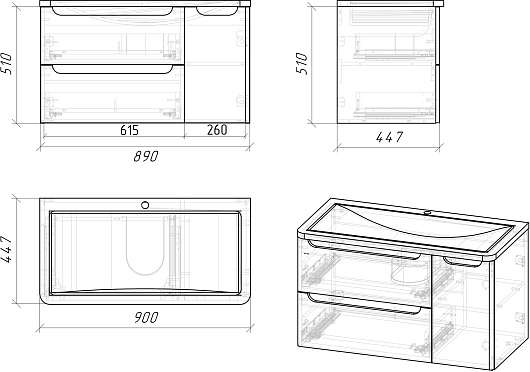 Подвесная тумба под раковину Grossman Адель 90 - арт. 109003.