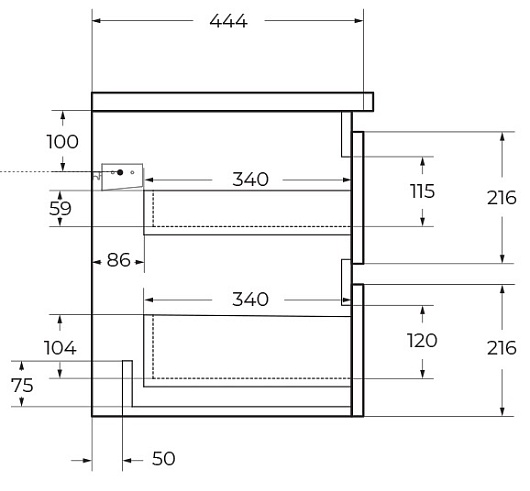 Два выдвижных ящика с фрезерованными ручками в плоскости фасада.