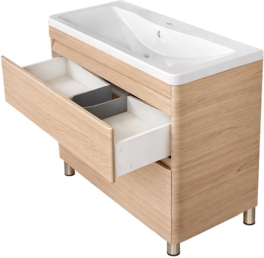 - Нижний вместительный ящик позволит эргономично разметить все необходимые ванные принадлежности.