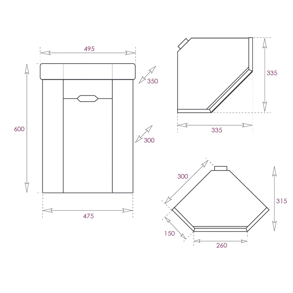 - Размеры тумбы без учета раковины и ножек 47x31x50 см.
