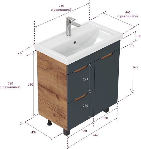 - Цвет: графит, дуб крафт золотой.