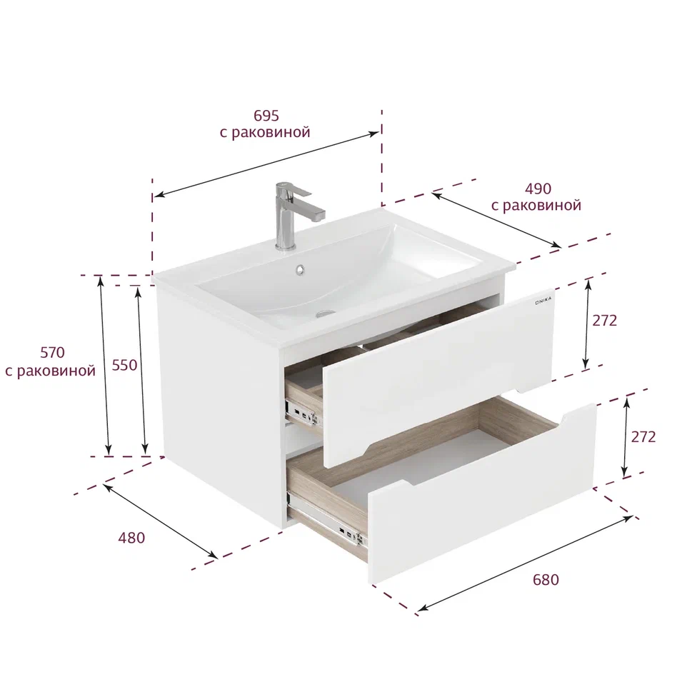 - Размеры тумбы без учета раковины 68x48x46 см.