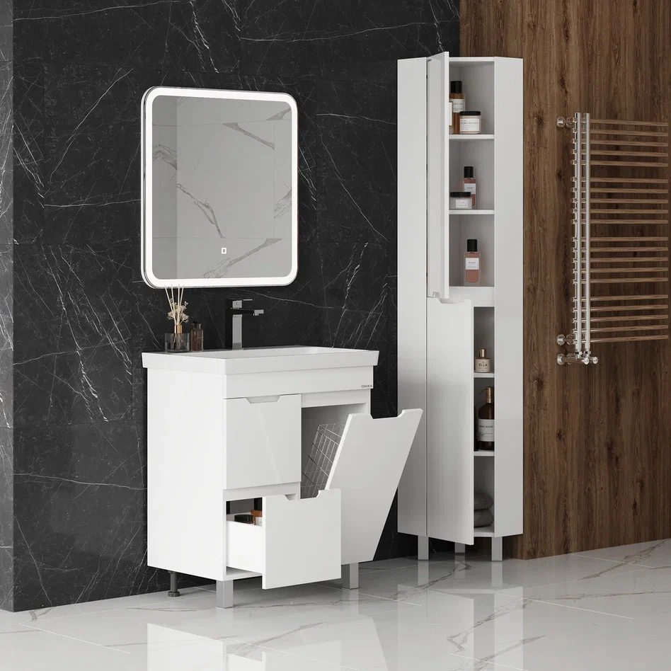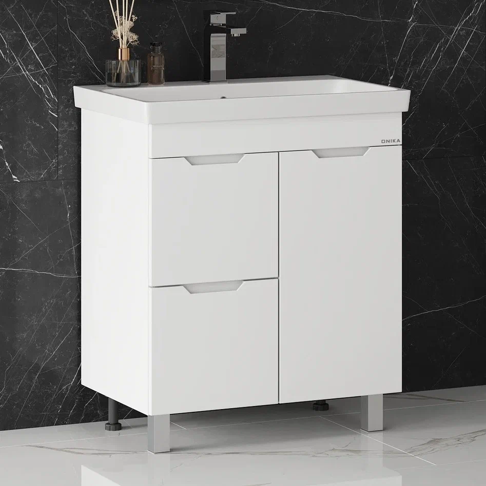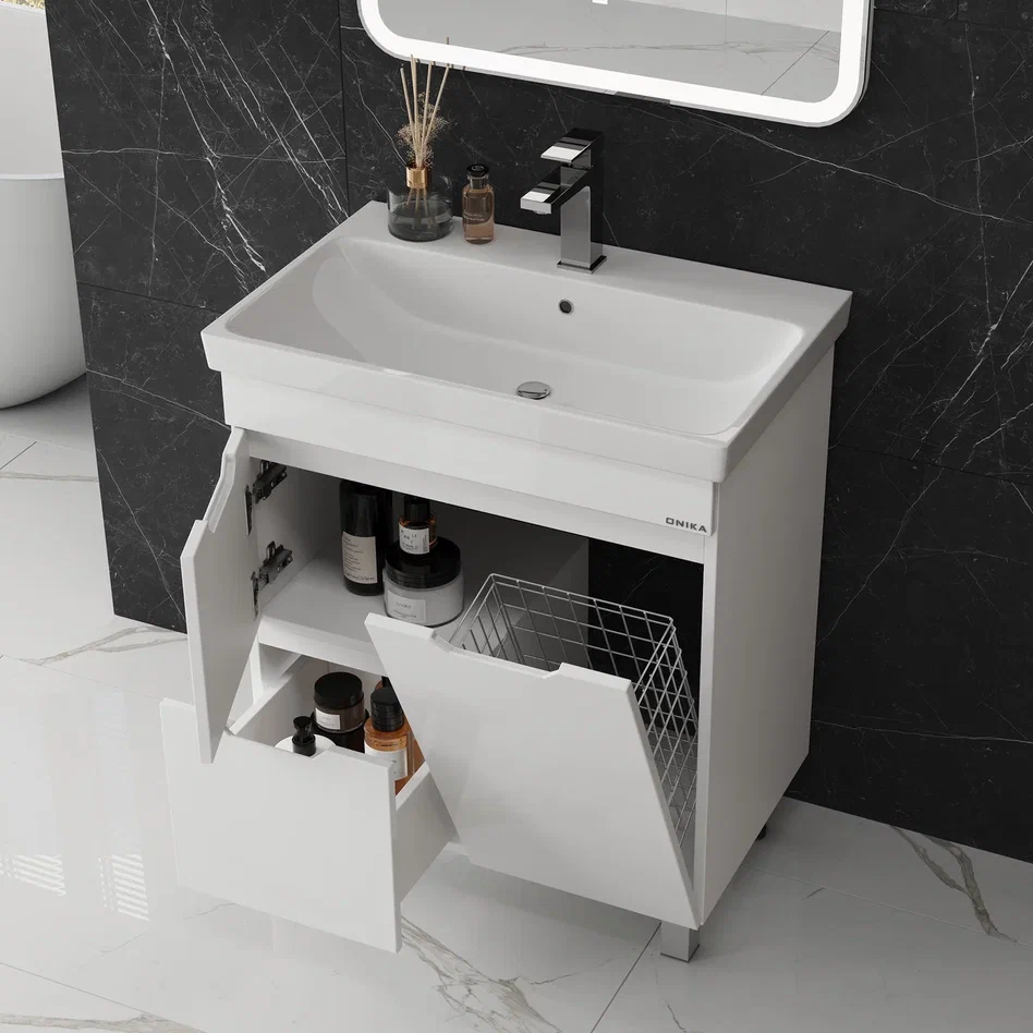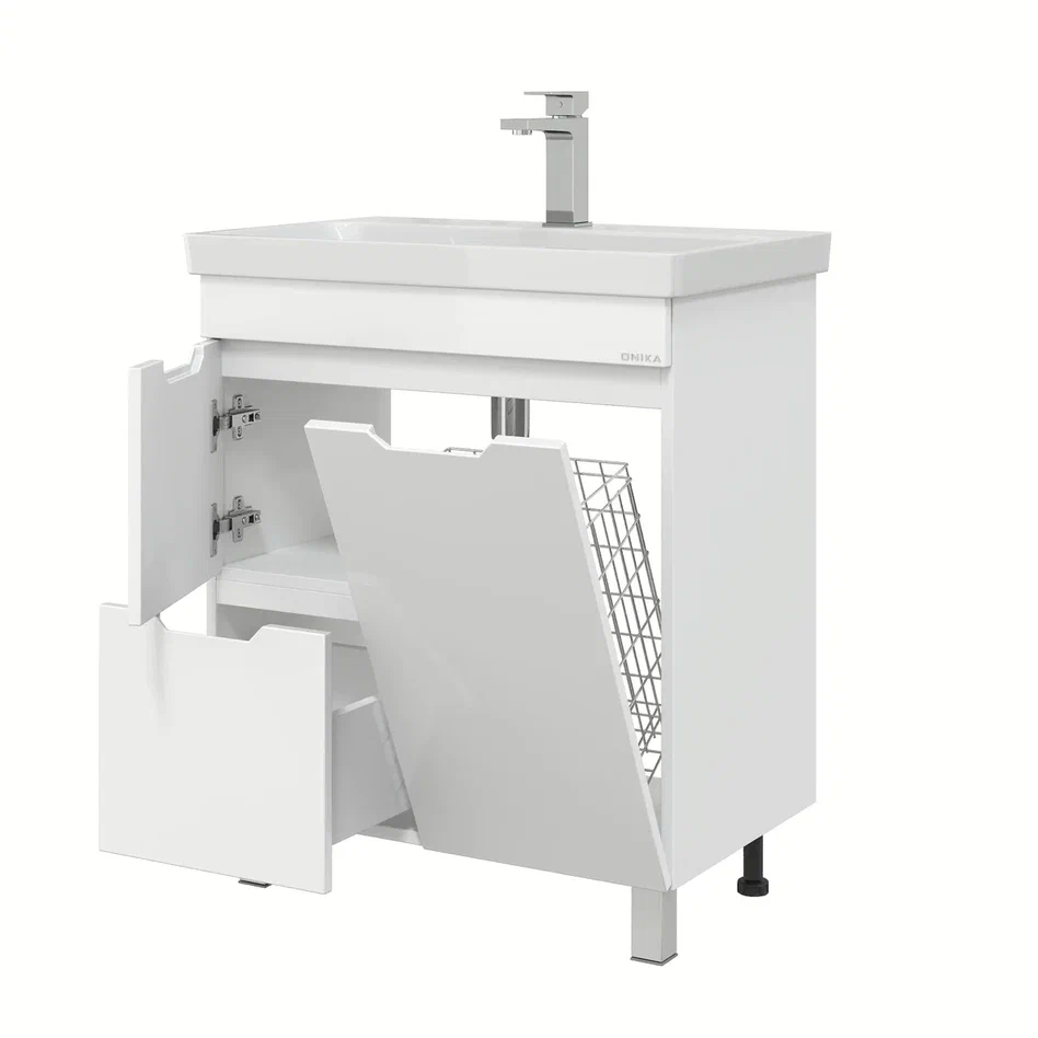 Onika Тумба под раковину Айленд 80 напольная белая с корзиной