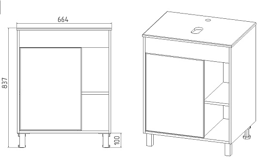 В комплекте: тумба, столешница, ножка (4 шт.).