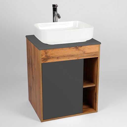 Viant Тумба под раковину Бостон 65 подвесная графит/дуб вотан