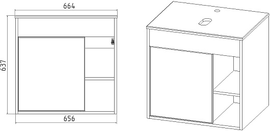 Подвесная тумба под раковину Viant Бостон 65 - арт. VBOS65NG-T1STP.
