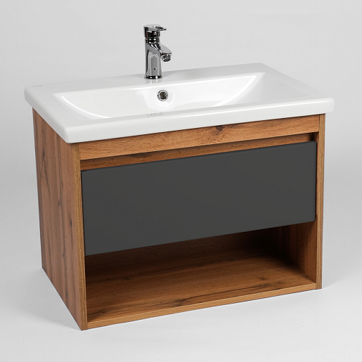 Viant Тумба под раковину Бостон 70 1 ящик подвесная графит/дуб вотан