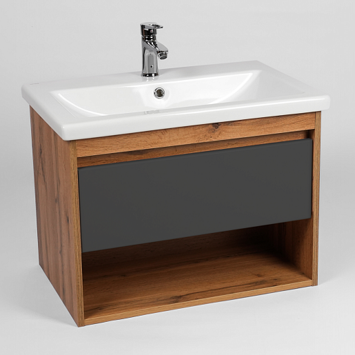 Viant Тумба под раковину Бостон 80 1 ящик подвесная графит/дуб вотан
