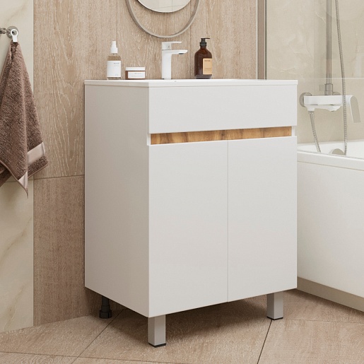 Mixline Тумба под раковину Брикс 60 2 створки белая/дуб вотан