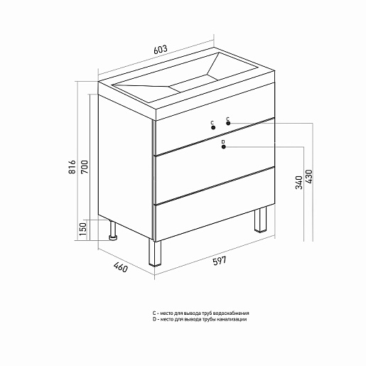 Mixline Тумба под раковину Брикс 60 2 ящика белый/дуб вотан
