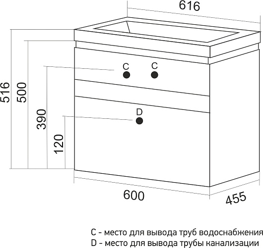 Подвесная тумба под раковину Mixline Брикс 60 - арт. 555004.