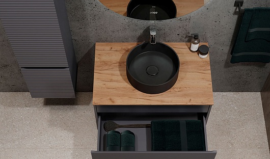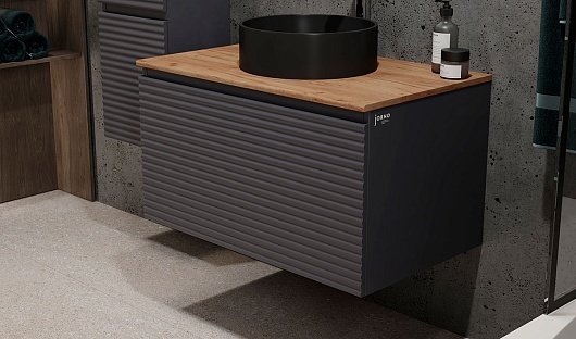 Jorno Тумба под раковину Cossety 80 подвесная антрацит/дуб Крафт золотой