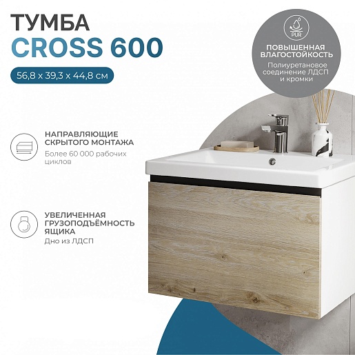 Vigo Тумба под раковину Cross 600-0-1 подвесная дуб давос натуральный