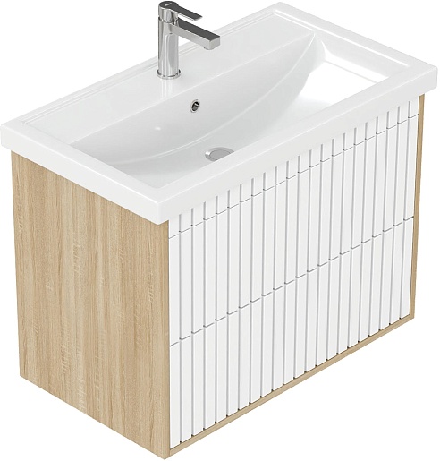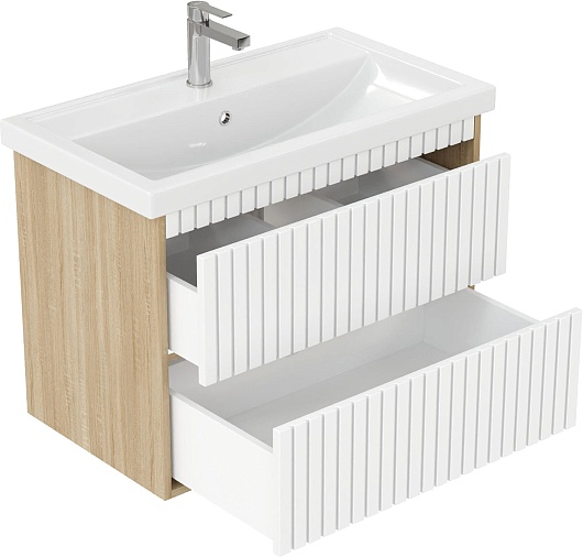 Onika Тумба под раковину Дайлер 80 подвесная белая/дуб сонома