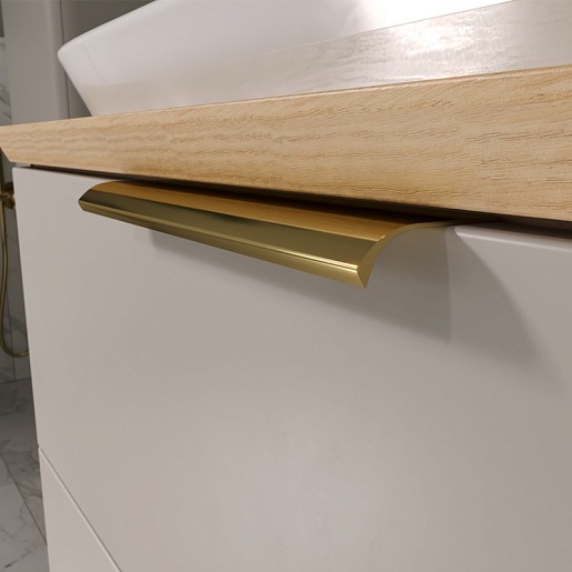 - Ящики тумбы открываются при помощи металлических ручек под золото.