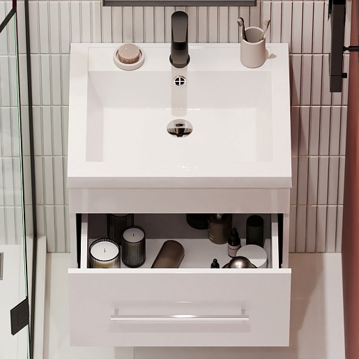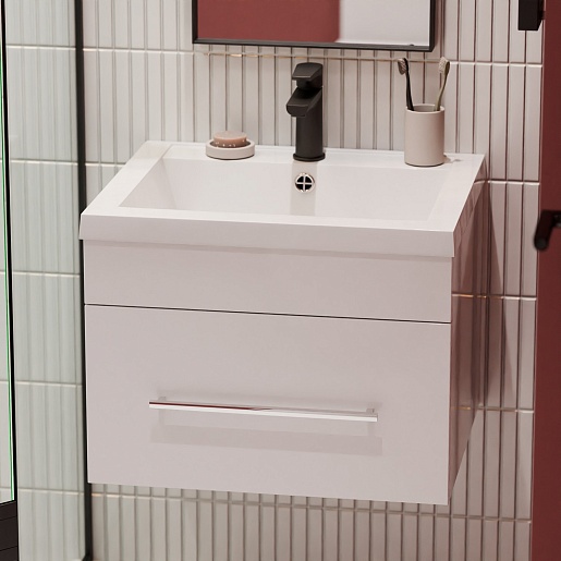 Водолей Тумба под раковину Элис 58 подвесная 1 ящик белая