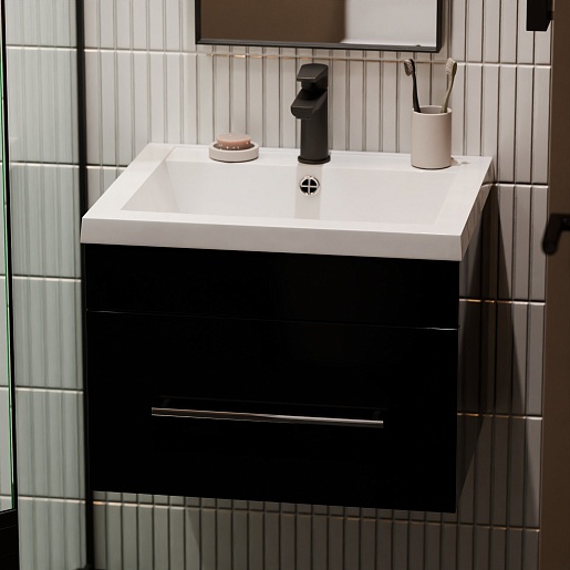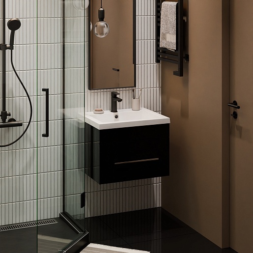 Водолей Тумба под раковину Элис 58 подвесная 1 ящик черная