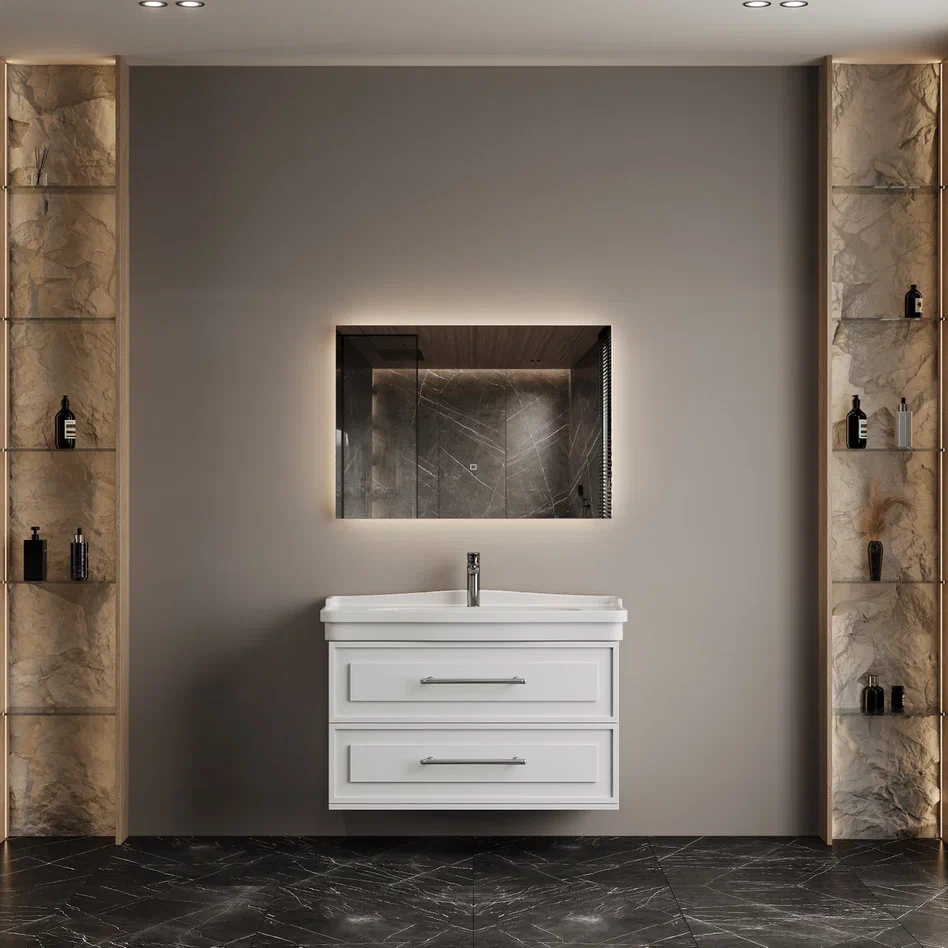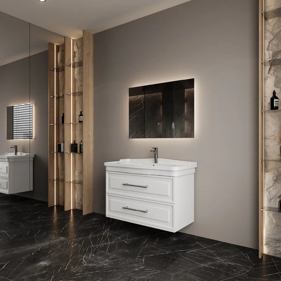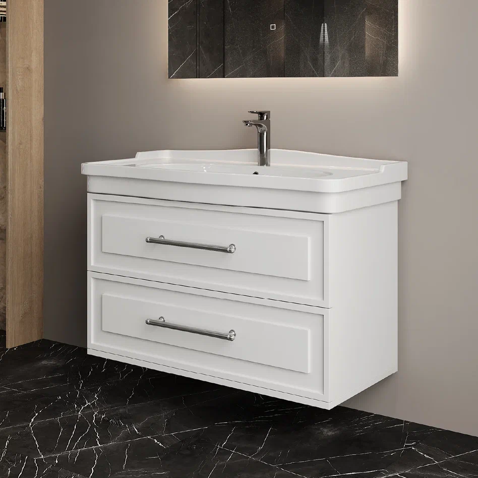 Onika Тумба под раковину Элисан 105 подвесная белая