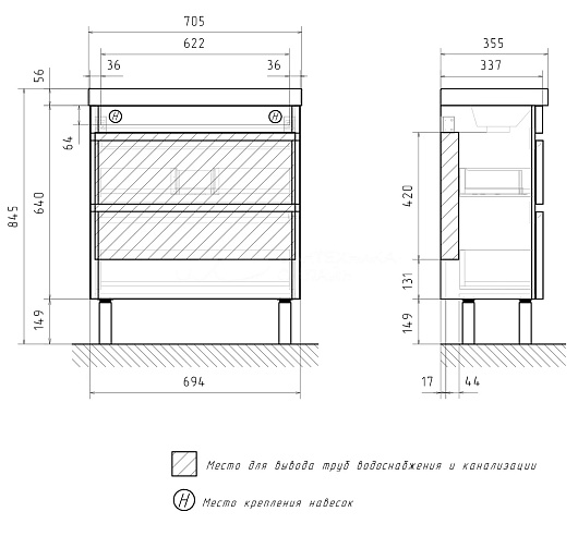 Equil Тумба под раковину Eltoro 70 2 ящика напольная черный софт