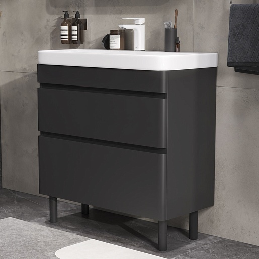 Equil Тумба под раковину Eltoro 80 2 ящика напольная черный софт