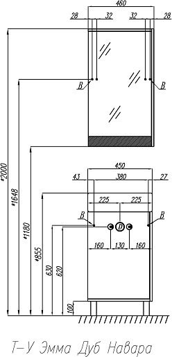 Комплектация: тумба, навес (2 шт.), ножка (2 шт.).