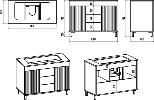 - 2 распашные дверцы, 3 выдвижных ящика.