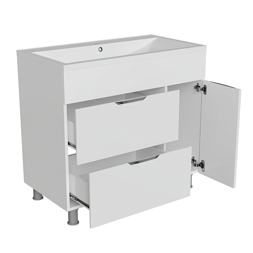 - Вместительная мебель коллекции обеспечит место всем банным мелочам.