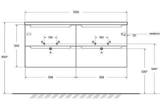 Габариты корпуса тумбы (ШхВхГ): 1202х500х462 мм.