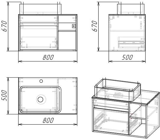Подвесная тумба под раковину Grossman Фалькон 80 - арт. 108005.