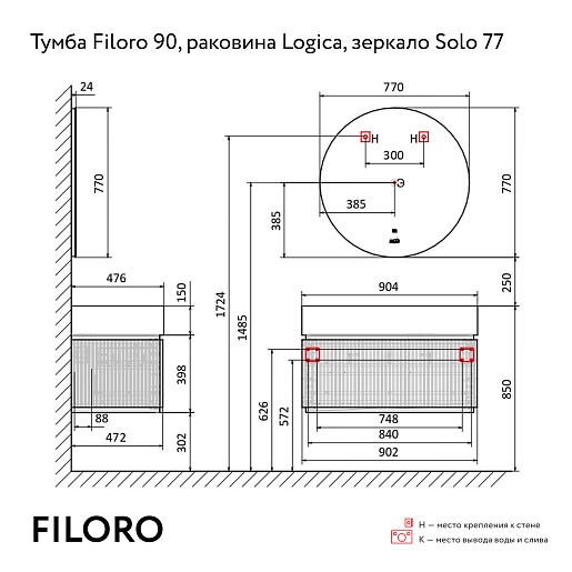 Jorno Тумба под раковину Filoro 90 подвесная белый