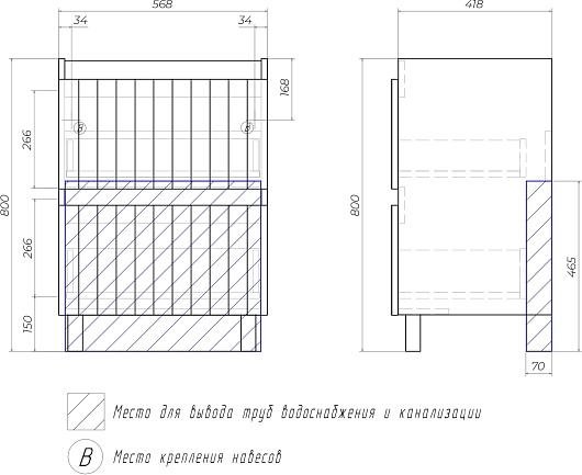 - Монтаж: к стене с опорными ножками.