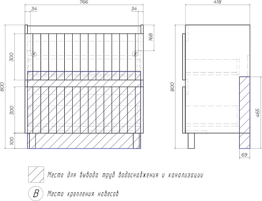 В комплекте: тумба, сифон, ножка (2 шт.).