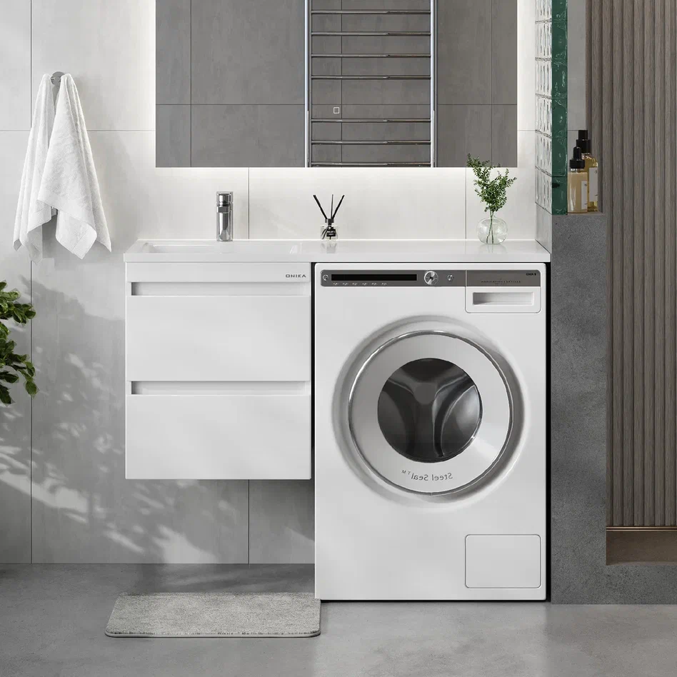 Onika Тумба под раковину Флэтон 38 подвесная под стиральную машину белая